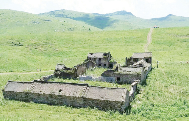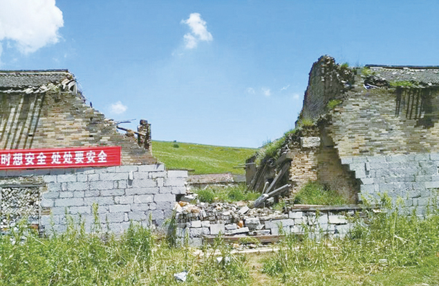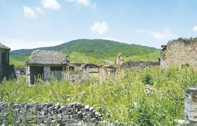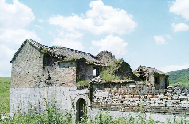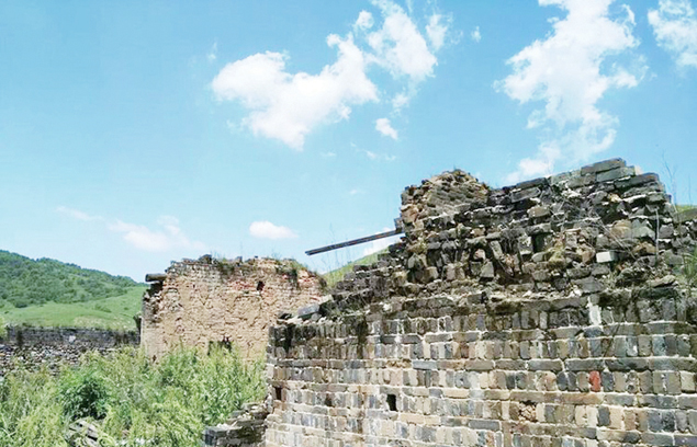 汤王行宫不远处的山坡下,就是析城山的汤帝庙,如今入眼的,仅剩残垣断壁。依稀能够看出,该庙为进深二进院落,正南为大门,向内侧为双层楼房。如今庙门已用石头围挡,出于安全考虑,不再允许游人进入。记者一行人绕着汤庙外围墙走了一圈,走到西侧围墙时,无意中发现围墙的大青石上似乎有字。记者走到跟前,用手蘸了点周围野草上的露水,在围墙上涂抹了一下,青石上的字迹立刻显露出来。再摸了摸其他的石砖,好像都有字,整面墙几乎都是用刻有文字的青石砌成。由于年代久远,字迹斑驳,也看不清楚刻的是什么字,看来这还需要有关专业人士去研究。